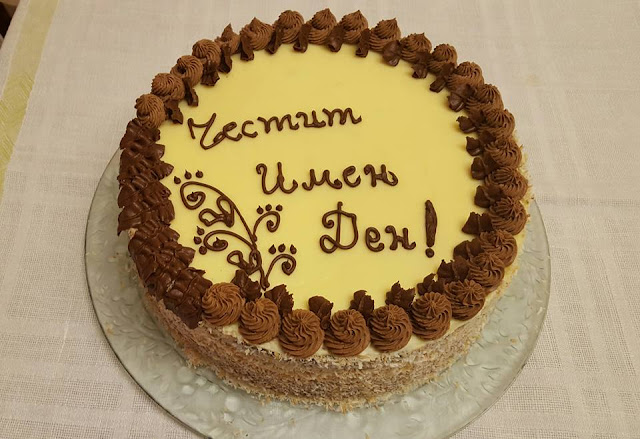 Изсипете в форма за торта с диаметър 26см. Изпечете на 180 градуса до суха клечка. След като се охлади блата се разрязва на два по- тънки.