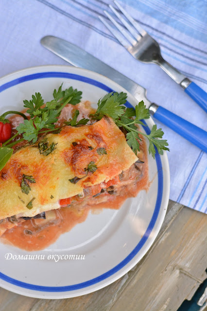 Ако ще ги запечете на фурна, покрийте тавата с хартия за печене, подредете ги и ги сложете в топла фурна на 200 градуса, до като се запекат.Вземете подходяща тава, в която да сглобите лазанята.