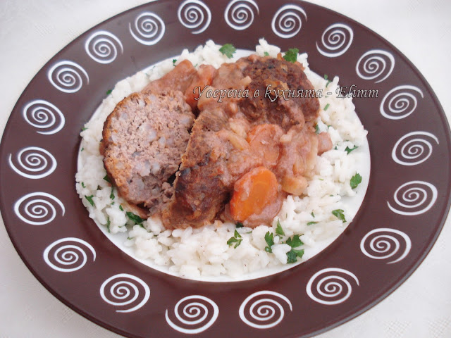 Съдът се похлупва и оризът се готви 15 минути. Дърпа се от котлона и се оставя похлупен за още 10 минути.Около 3–4 с. л. от ориза се заделя за кюфтетата, а останалият се овкусява със сол, черен пипер и наситнен магданоз и се оставя за гарнитура.